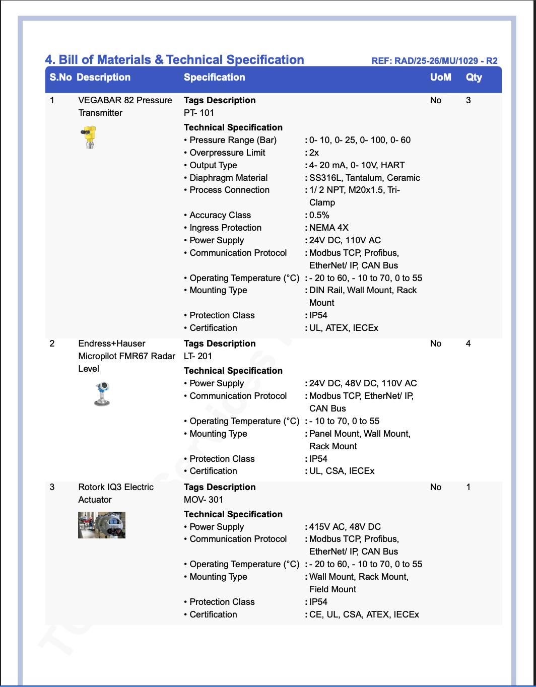 Eliminate repetitive data entry with direct product selection in the quote. Technical specifications and product details are auto-filled, supporting both mandatory and configurable options.